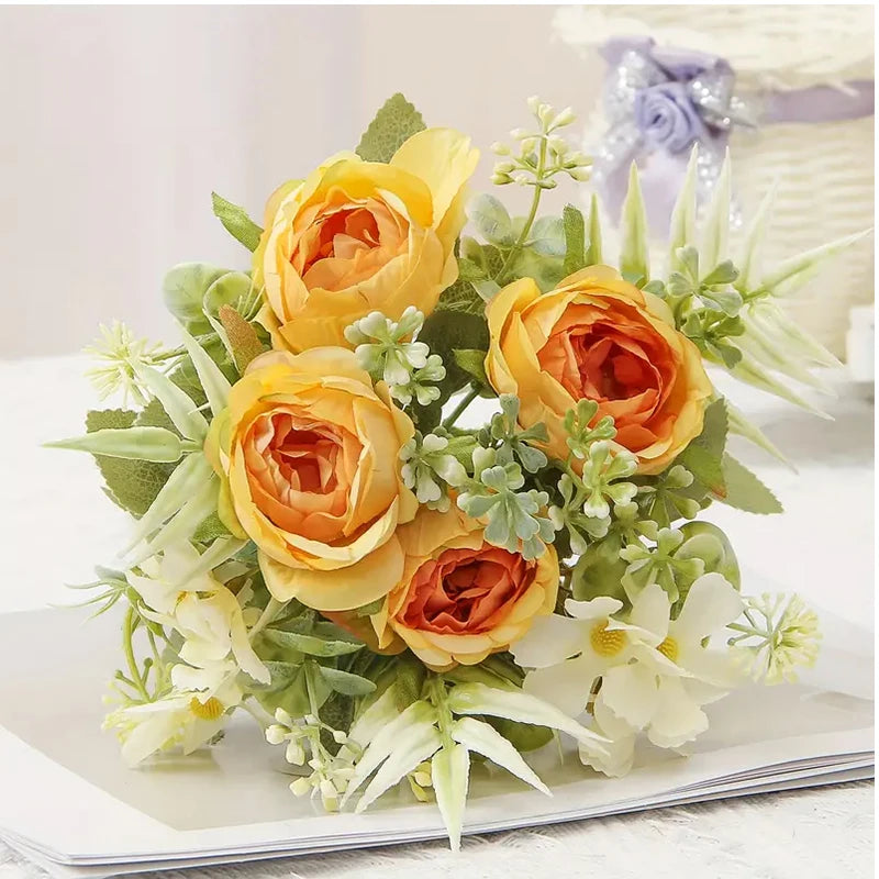 Ramo de peonías artificiales con acabado de tacto realista, ideal para dar un aire elegante y colorido a cualquier espacio. Perfecto para bodas, fiestas, decoración de hogar u oficina y como detalle especial en ocasiones como San Valentín, Día de la Madre o cumpleaños. Mantiene su belleza todo el año sin necesidad de agua ni cuidados, aportando siempre frescura y estilo.