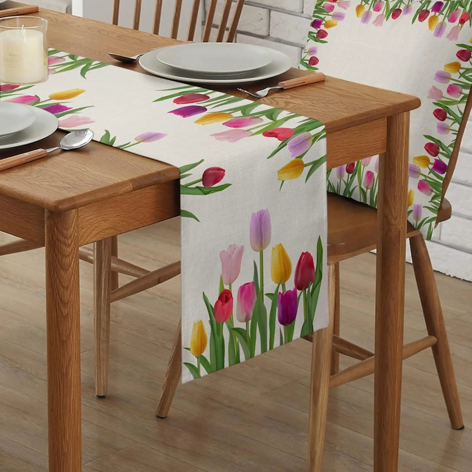 Camino de Mesa de Lino con Tulipanes